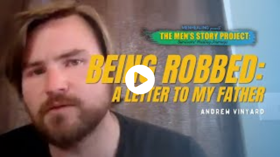 Andrew Vinyard (he/him) is a pillar of MenHealing’s community, both as a survivor bringing his story to light, and as a Peer Leader, offering healing and understanding to folks in our Support Groups. Last year, he was one of 12 artists featured at our Courage to Create stage reading + fundraiser, and in 2021, Andrew shared “Being Robbed: A Letter to My Father” for a collaboration between MenHealing & The Men’s Story Project. We’re so grateful to have such a compassionate, creative soul in our community!